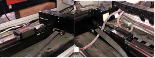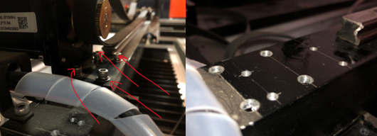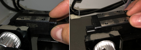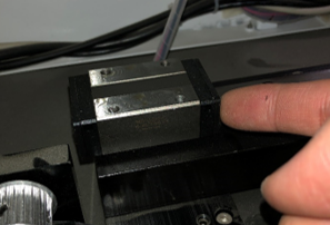 We will need to remove the entire X bar from the bearings to replace one or both bearings, as the X bar is screwed in directly into the bearings. To remove the left side screws, we will first need to remove the mirror on the X bar.