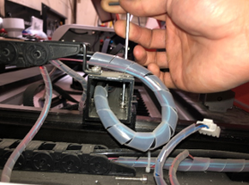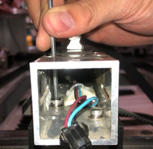 Once the bearing is replaced, you may start the reassembly process. Be sure when screwing in the X bar to both y bearings, that the X bar is 90 degrees (perpendicular) to the bearing, so that the X bar is straight.