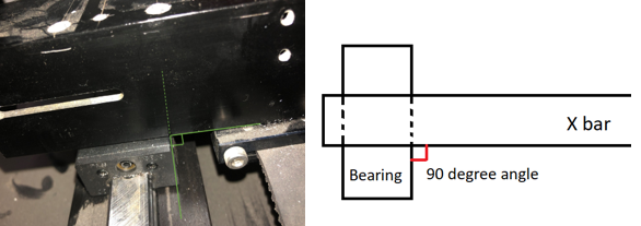 As shown in the picture, the X bar needs to be perpendicular to the bearing.