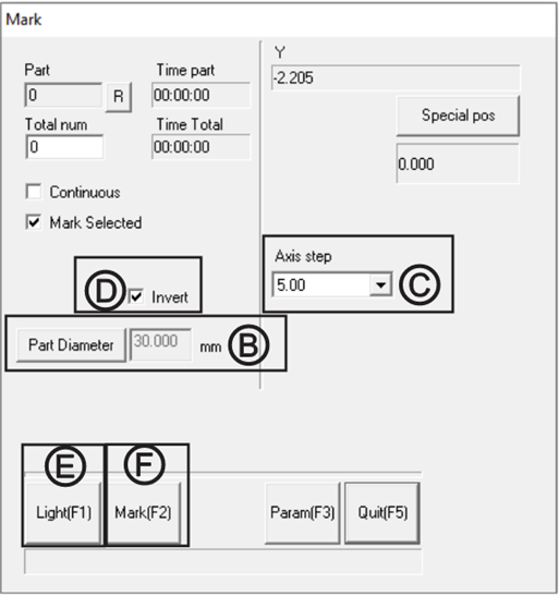- Define the objects diameter by clicking on “Part Diameter” in the RotaryMark window/