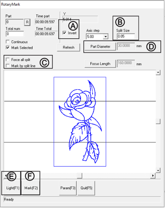 Fig. 3. – RotaryMark Parameters Window (Marking by Split Size)