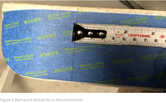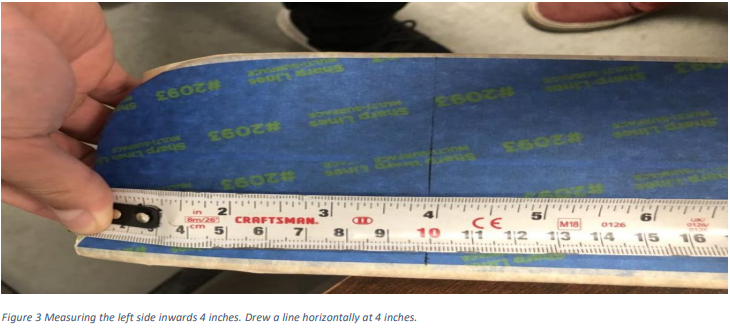 - Measure from the very end of the bench about 4 inches inward and make a line using a level/ruler.