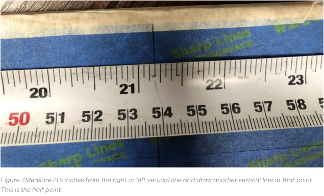 - From a vertical line measure about 21.5 inches and draw a vertical line there. This should be about half the distance between the vertical lines.