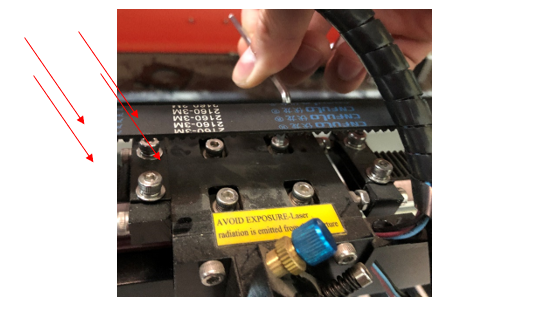 The next step will be to remove the laser head. To do so, use the allen key to remove the 4 screws holding the laser head to the bearing.