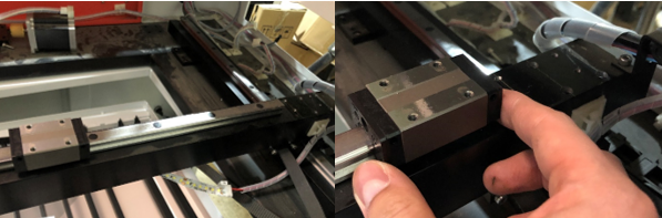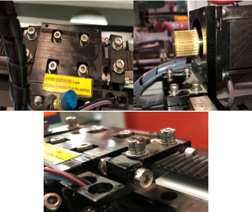 Once the bearing is back on the rail, you can now reassemble the laser head and motor bearing. Be sure to retighten the belt using the side screws again.