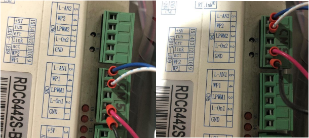 First, we will go into the controller in the back of the machine. When you get to the controller, you will swap the CN5 and CN6 green connectors.